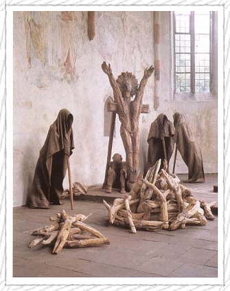 "... Von den zahlreichen Materialien, deren Mätzig sich bedient, ist das Holz das am meisten bevorzugte geblieben. Bereits in den frühen Arbeiten gestaltete er die Rahmen in naturfarbenem Holz, das sich gegen die übrigen Materialien warmtonig absetzt. Für die massiven Skulpturen, die in der letzten Zeit entstanden sind, verwendt er als Grundmaterial häufig Eichenbalken. Deren strukturelle Form wird in mehreren Arbeiten als Stele genutzt, aus der die figurativen Elemente entwicklet sind ..."